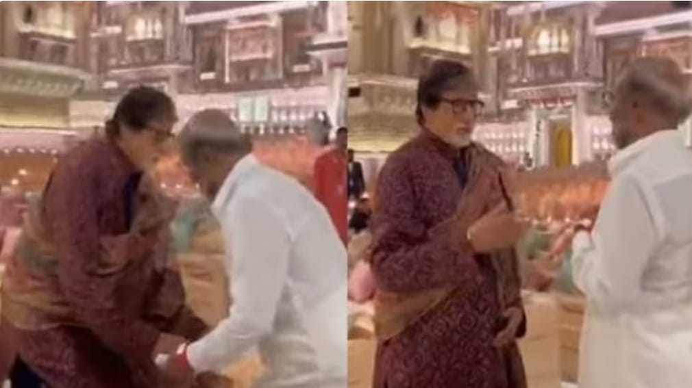 Amitabh Bachchan Reacts As Rajinikanth Bows To Touch His Feet At Ambani Wedding, Fans Say 'Purane Heroes...'