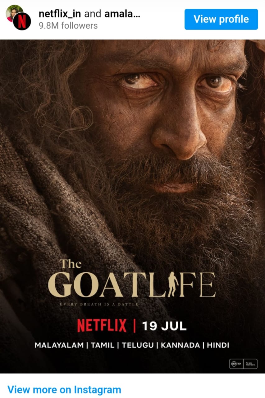 Netflix india took to instagram to announce the release of ‘Aadujeevitham’ with the caption, "A story of courage, hope, and survival. Idhu Najeebinte athijeevana katha. #Aadujeevitham is coming to Netflix on 19 July in malayalam, Tamil, Telugu, kannada and Hindi!"