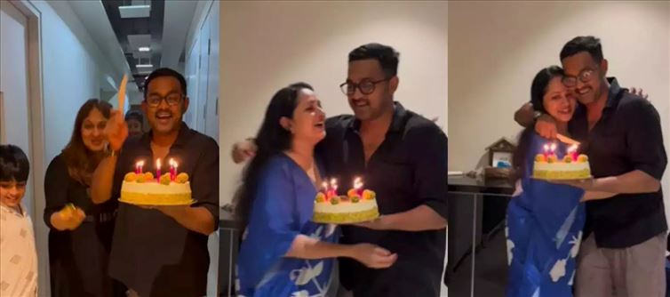'നീയല്ലേ ഇപ്പോൾ ഹീറോ, എനിക്ക് ഭയങ്കര അഭിമാനമുണ്ട്' എന്ന് മഞ്ജു പറയുന്നു. അതിന് ശേഷം സമയമോട്, ഇതാണ് നമ്മുടെ ട്രൂ ഹീറോ എന്ന് പറയുന്നതും കാണാം. വീഡിയോയിൽ നരേൻ കാണുന്നില്ല. പോസ്റ്റിന് താഴെ മഞ്ജുവിന് ആശംസകൾ അറിയിച്ചുകൊണ്ടുള്ള നിരവധി കമന്റുകൾ വരുന്നുണ്ട്. ഭാര്യയ്ക്കും മക്കൾക്കും ഒപ്പം, മെഴുകുതിരി കുത്തിയ ബർത്ത് ഡേ കേക്കുമായി, ഹാപ്പി ബർത്ത് ഡേ പാടി ആസിഫ് അലിയും ഭാര്യ സമയും എത്തുകയായിരുന്നു. 'എന്റെ ദൈവമേ, എന്തൊരു സർപ്രൈസ് ആണിത്' എന്ന് ചോദിച്ചുകൊണ്ടാണ് മഞ്ജു ആസിഫിനെയും ഭാര്യയെയും സ്വീകരിക്കുന്നത്.
