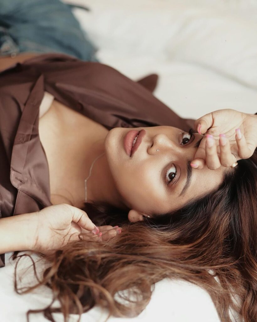 Deviyani, however, doesn't stop there. Another intriguing element of the costume is a distinctive forehead adornment that suggests a deeper cultural tie. Deviyani's characteristic self-assurance and seductive stare, however, really make the complete ensemble pop. Completing the image with matching shoes shows that she can be just as alluring in a conventional lehenga as she is in her typical daring looks. A whole new aspect of Deviyani has emerged, and we couldn't be happier about it! Deviyani, as usual, paired the flamboyant image with an equally flaming text that read, "Don't just be hot, be lava." Unknown. You're certainly exploding like lava in this one, Deviyani!