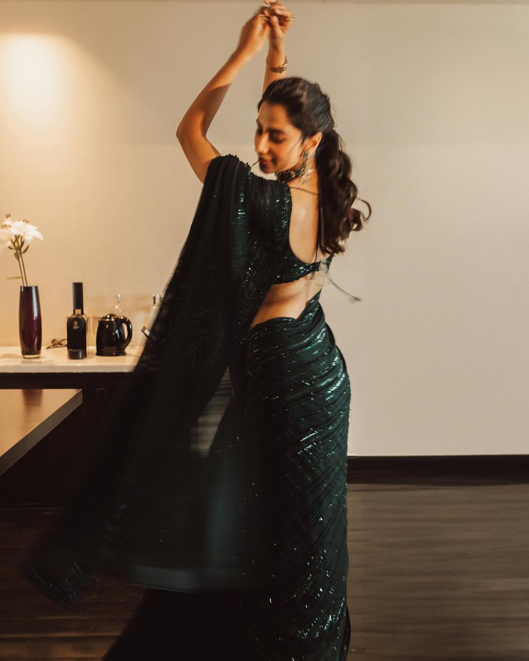 అందులో భాగంగా ఈమె ప్రస్తుతం విశ్వక్ సేన్ హీరోగా రూపొందుతున్న మెకానిక్ రాఖీ మూవీ లోను , దుల్కర్ సల్మాన్ హీరోగా వెంకి అట్లూరి దర్శకత్వంలో రూపొందుతున్న లక్కీ భాస్కర్ సినిమాలోను హీరోయిన్ గా నటిస్తోంది. ఇకపోతే సినిమాలలో తన అదిరిపోయే హాట్ అందాలను ఆరబోస్తున్న ఈమె సోషల్ మీడియాలో అందుకు ఏ మాత్రం తగ్గడం లేదు. తాజాగా కూడా ఈమె అదిరిపోయే హాట్ లుక్ లో శారీని కట్టుకొని తన బ్యాక్ అందాలు ప్రదర్శితం అయ్యేలా ఫోటోలకు స్టిల్స్ ఇచ్చింది. ప్రస్తుతం ఆ ఫోటోలు వైరల్ అవుతున్నాయి.