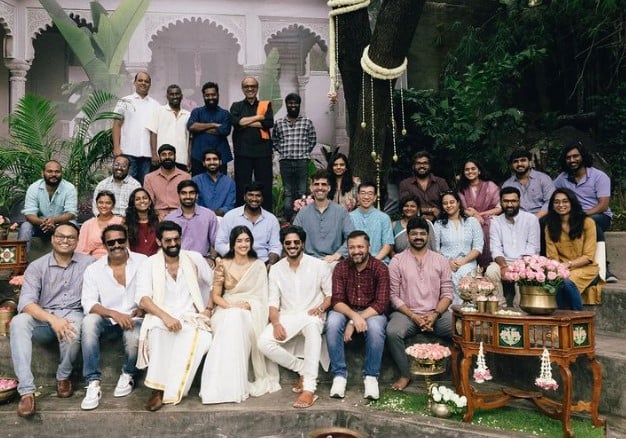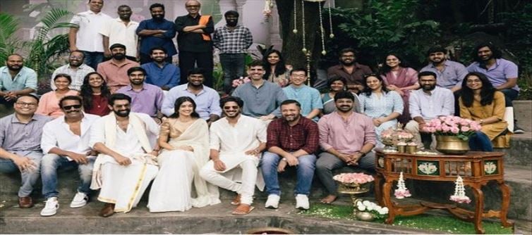 The pooja ceremony of this film was held in hyderabad on Monday. During this, the cast and crew members of the film were seen in traditional attire. The film is being produced by suresh productions, Rana Daggubati's Spirit Media, and Dulquer's Wayfarer Films. According to the press note released by the film's team, 'Kantha' is set in madras in the 1950s. The film will show the history and the social changes of the time as well as the complexities of human relationships. The first look of the film can be released soon. The film will be released in Telugu, Tamil, malayalam and Kannada.