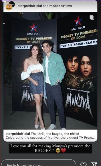 Sharvari Wagh and Abhay Verma won everyone's hearts with their excellent acting in the horror-comedy film 'Munja'. At the same time, Abhay Verma and Sharvari Wagh recently celebrated the success of the tv premiere of their film Munja. Abhay has shared great pictures of the celebration on his instagram story.