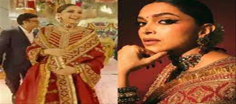 3. deepika Padukone’s Crimson Delight: deepika Padukone’s crimson anarkali by Torani is ideal for both brides and guests. The suit boasts exquisite Resham embroidery, sequin embellishments, and real gold gotta work. With bell sleeves, a round neckline, and A-line flare, it’s paired with embroidered palazzo pants and a matching dupatta. deepika accessorizes with a choker necklace, earrings, kadhas, and a gajra-adorned bun.