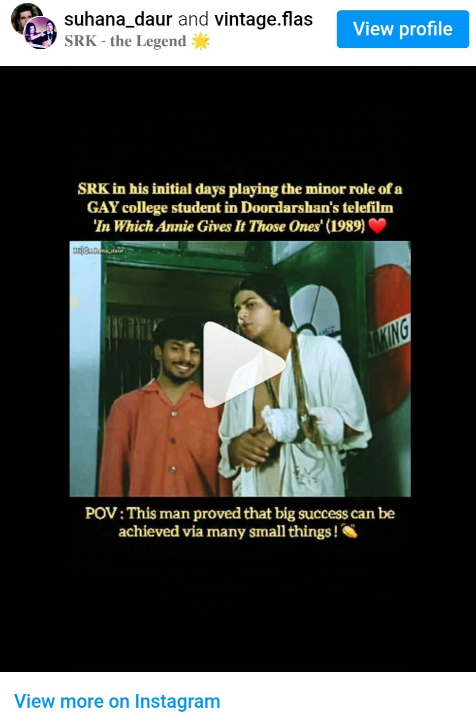 Bollywood icon Shah Rukh Khan, now a reigning figure in hindi cinema, had modest beginnings. One of his early roles was in the film 'In Which Annie Gives It Those Ones', written by author and activist arundhati Roy. A vintage clip from the movie, featuring SRK in a gay character role, has recently resurfaced online.