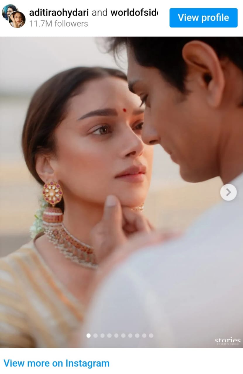 Siddharth and Aditi Rao Hydari's traditional southern indian wedding ceremony was held in Srirangapur in Telangana's Wanaparthy District, at the 400-year-old Sri Ranganayakaswamy Temple. It has historical value to Aditi's family and was constructed in the 18th century A.D. The actors took to instagram to share their love-filled wedding photos.