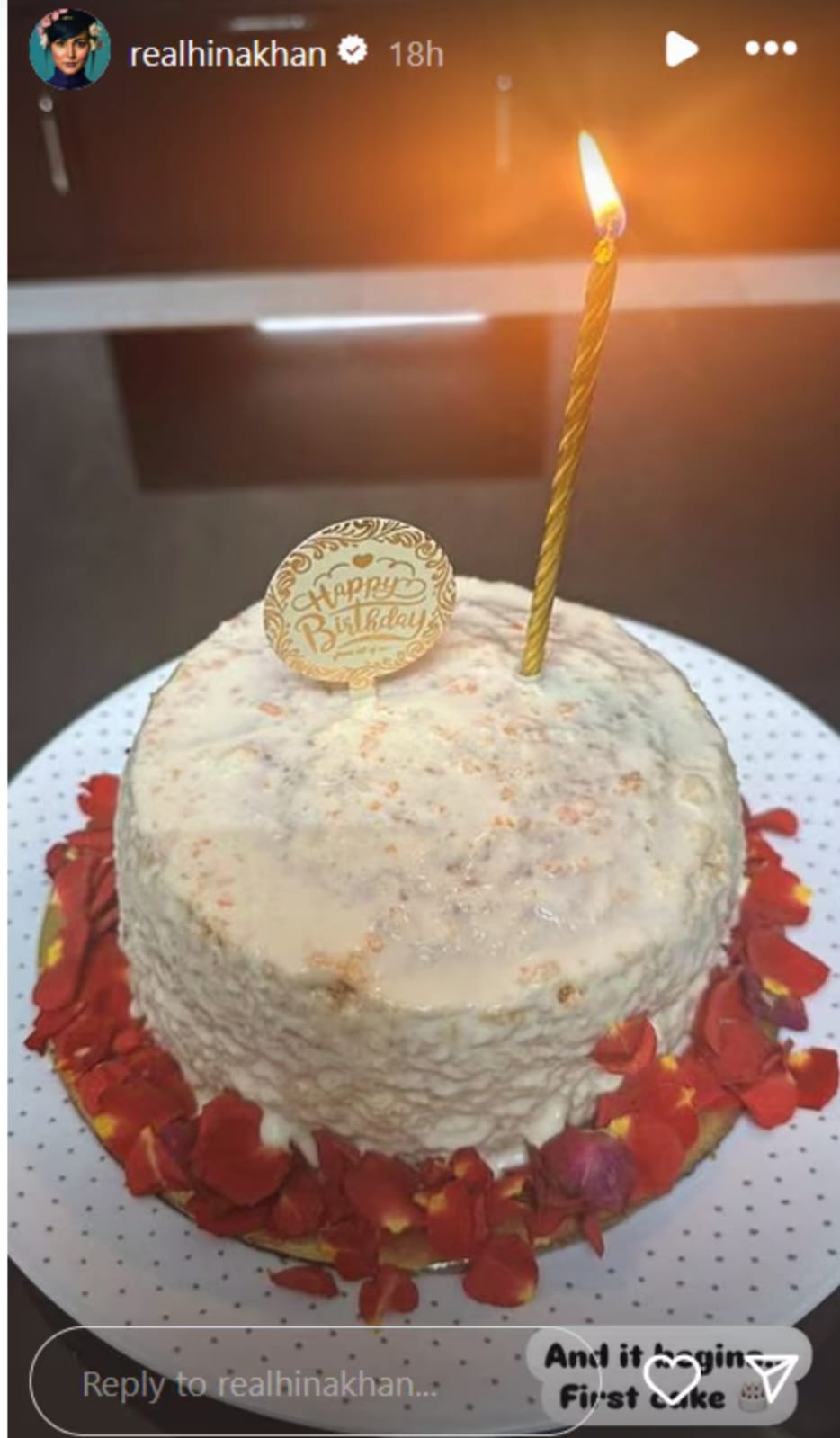 Hina Khan shared a photo of the cake and wrote - And this is the beginning. First cake. Hina Khan is taking her life very positively and is also inspiring fans to stay positive.