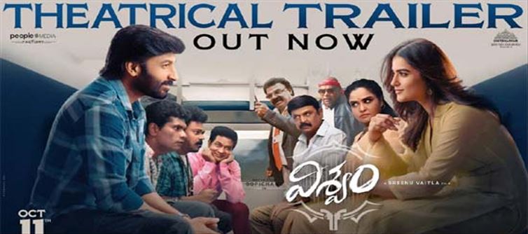విశ్వం ట్రైలర్ విషయానికి వస్తే.. బార్డర్ దగ్గర టెర్రరిస్టులను తుడిచి పెడుతూ ఉంటే.. నేను ఈ దేశం నుంచి టెర్రరిస్టులను పుట్టిస్తున్నాను అనే డైలాగ్ తో ఈ సినిమా ట్రైలర్ మొదలవుతుంది. ఇందులో గోపీచంద్ మరొకసారి రెండు విభిన్నమైన పాత్రలలో కనిపించబోతున్నారు. అలాగే గోపీచంద్ యాక్షన్స్ సన్నివేశాలతో పాటు డైరెక్టర్ శ్రీనువైట్ల కామెడీ పంచులు ఈ సినిమాలో బాగానే పేలుతున్నట్లు కనిపిస్తోంది. కమెడియన్స్ తో ఆడించిన ఆటలు కూడా పేలేలా కనిపిస్తున్నాయి. దసరా కానుకగా ఈ సినిమా అక్టోబర్ 11న ప్రేక్షకుల ముందుకి రాబోతున్నది. ప్రస్తుతమైతే చిత్ర బృందం సినిమా ప్రమోషన్స్లో బిజీగా ఉన్నారు.