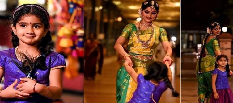 ജനനം മുതലേ തന്നെ ഐശ്വര്യ പ്രേക്ഷകർക്ക് പരിചിതയാണ്. മകളുടെ ഓരോ വിശേഷങ്ങളും താരം പങ്കുവെക്കാറുണ്ട്. 2020 ജനുവരി 14 നായിരുന്നു ഐശ്വര്യ ജനിച്ചത്. ഞങ്ങൾക്കൊരു രാജകുമാരി ജനിച്ചു. ഐശ്വര്യ എന്നാണ് പേര് നൽകിയതെന്നും അന്ന് ദിവ്യ പറഞ്ഞിരുന്നു. അർജുനും മീനാക്ഷിയുമാവട്ടെ, കുഞ്ഞനിയത്തിയെ നിലത്തുവെക്കാതെ കൊഞ്ചിക്കുകയായിരുന്നു. മക്കൾ തമ്മിലുള്ള ബോണ്ട് കാണുമ്പോൾ മനസ് നിറയുമെന്ന് ദിവ്യ പറഞ്ഞിരുന്നു. മലയാളികൾക്ക് ഏറെ ഇഷ്ടമുള്ള നടിയാണ് ദിവ്യ ഉണ്ണി.അമ്മയ്ക്കൊപ്പം ചുവടുവെച്ചുള്ള മകളുടെ വീഡിയോ മുൻപ് വൈറലായിരുന്നു. ഇപ്പോഴിതാ നവരാത്രി ആഘോഷത്തിനിടെ നൃത്തം ചെയ്യാനൊരുങ്ങുന്ന അമ്മയ്ക്ക് ചിലങ്ക കെട്ടിക്കൊടുക്കുന്ന ഐശ്വര്യയുടെ വീഡിയോയാണ് വൈറലായിക്കൊണ്ടിരിക്കുന്നത്.