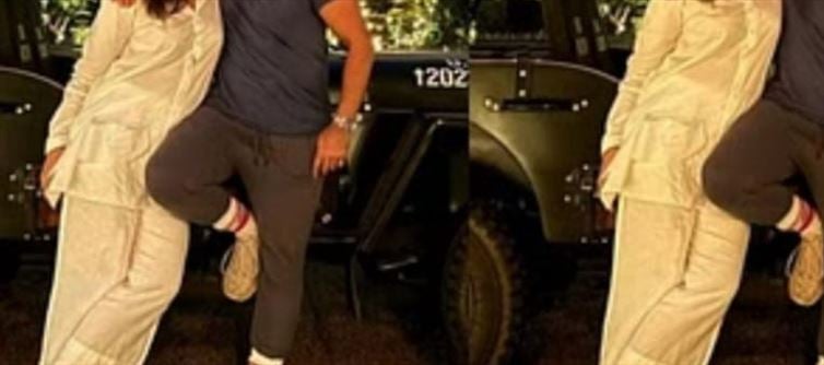 In the pictures going viral on social media, Saif can be seen kissing Kareena on the cheek. In the second picture, Saif is seen keeping his hand on his wife Kareena's shoulder. In the picture, Saif looks very stylish in a blue T-shirt. Whereas, Kareena has worn a white dress. Kareena also shared pictures of Saif and Taimur on her instagram story. While Saif was seen standing in front of his ancestral house, Kareena also gave it a cute caption. In another photo, Taimur was seen playing football. Kareena captioned it, "My kind of celebration."