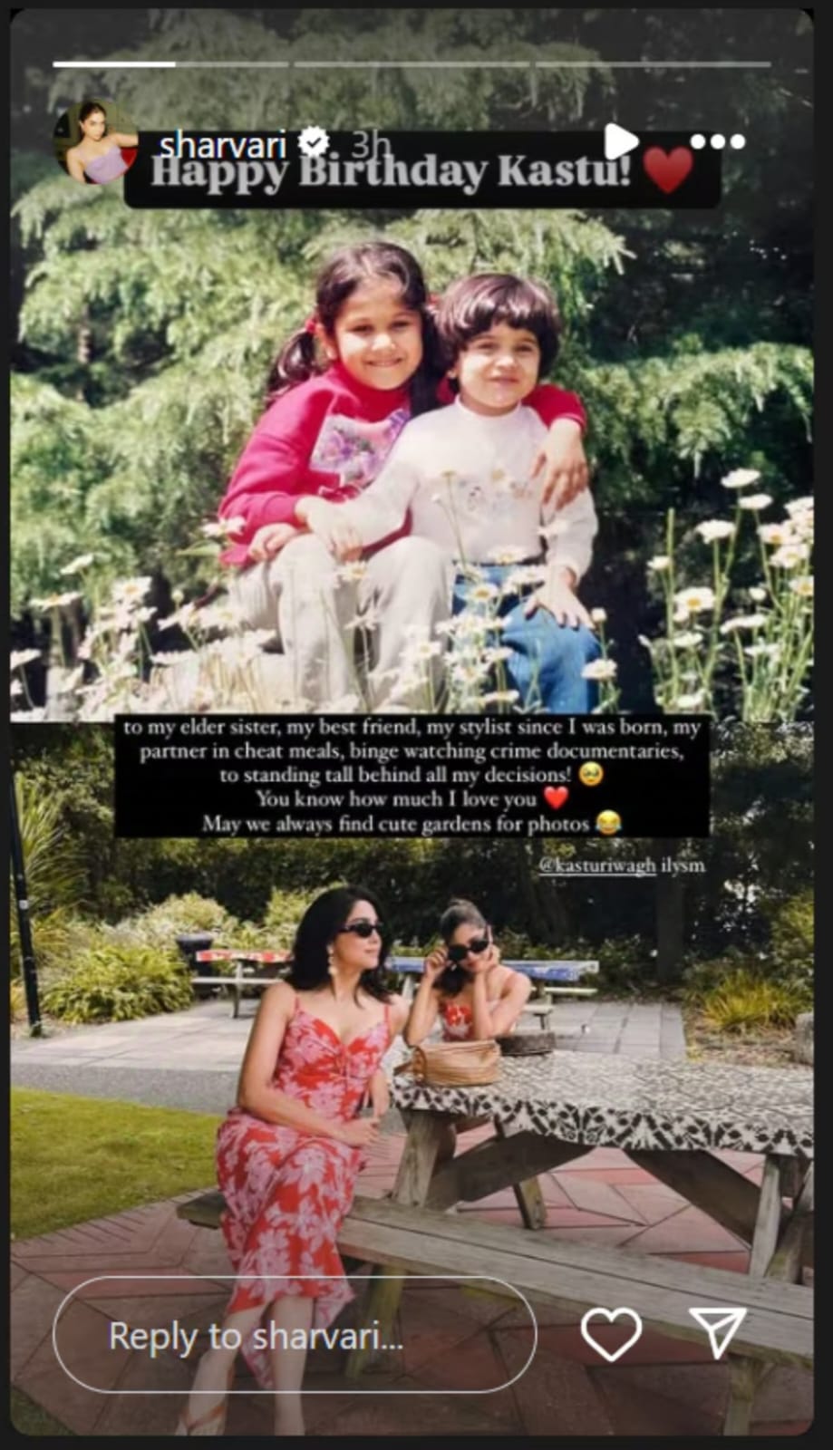 Sharvari posted a collage on the story section of her instagram account, which includes one childhood picture and another from a picnic.