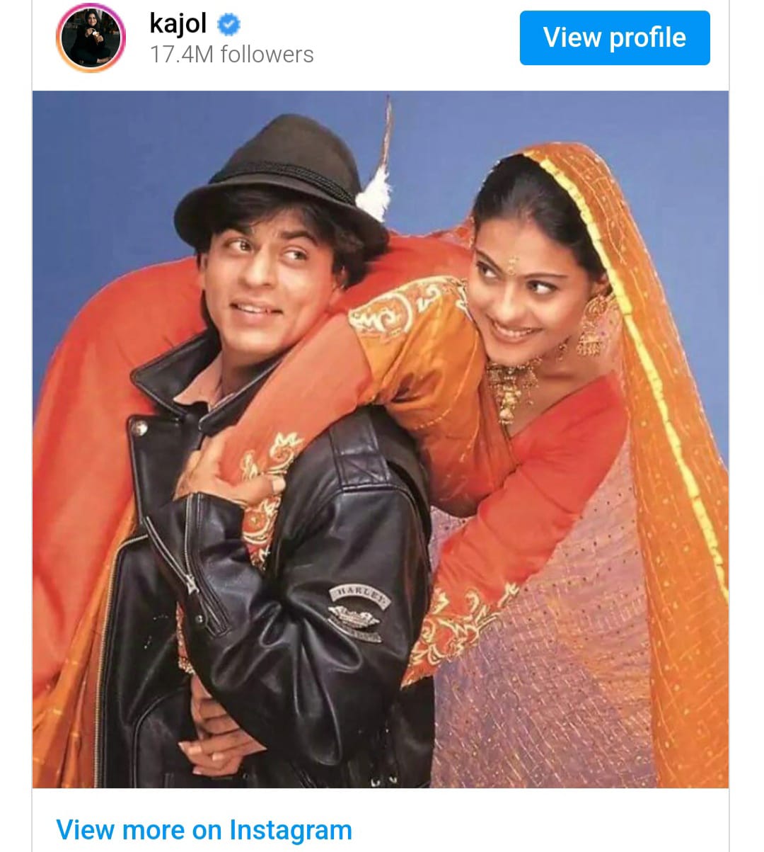 The caption read, "29 years to the OG of Karva Chauth… wishing everyone a very hungry and successful Karva Chauth.. maybe go to maratha mandir and see the film. It’s 0 calories. #29yearsofddlj #ddlj."