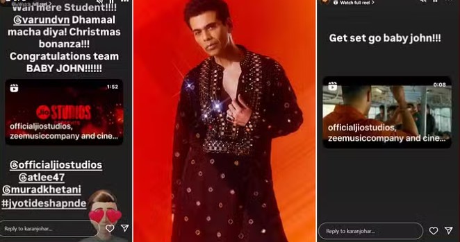 Soon after the release of the taster cut of Baby john, karan johar shared it on his instagram story. Along with the video, karan johar also praised varun dhawan and called him his 'student'. Calling it a christmas bonanza, he also congratulated the team of Baby John. "Wah mere student @varundvn dhamal macha diya! christmas bonanza, congratulations team Baby John" Karan wrote.