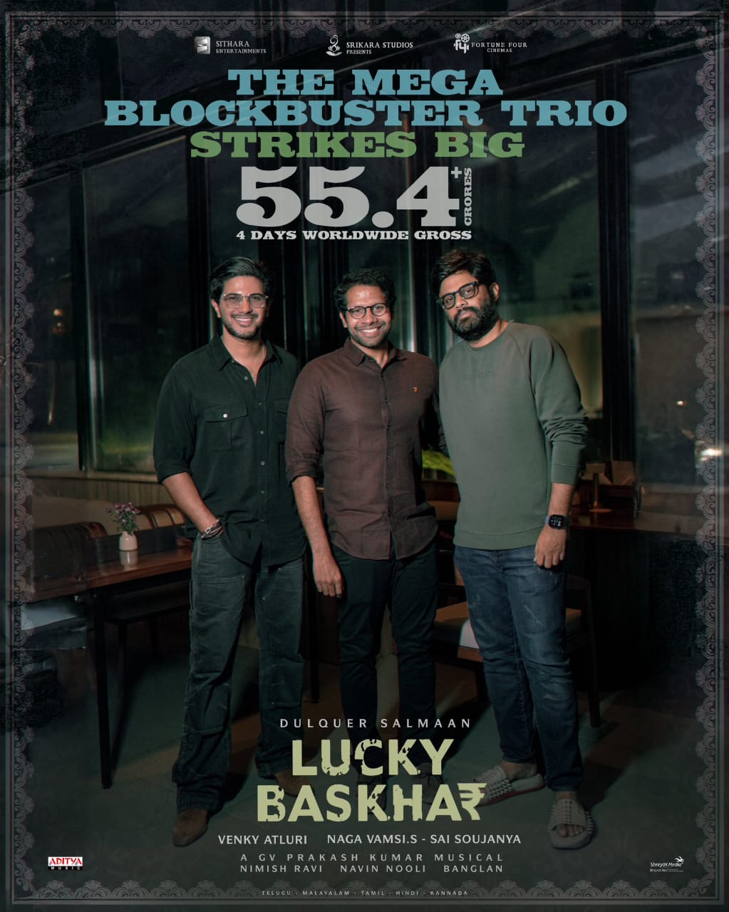 ఆ తర్వాత కూడా ఈ మూవీ కి మంచి కలెక్షన్స్ వస్తున్నాయి. ఇప్పటివరకు ఈ సినిమాకు సంబంధించిన నాలుగు రోజుల బాక్స్ ఆఫీస్ రన్ కంప్లీట్ అయింది. ఈ నాలుగు రోజుల్లో కూడా ఈ సినిమాకు సూపర్ సాలిడ్ కలెక్షన్స్ ప్రపంచ వ్యాప్తంగా దక్కాయి. ఇకపోతే తాజాగా ఈ మూవీ బృందం వారు ఈ సినిమాకు నాలుగు రోజుల్లో ప్రపంచ వ్యాప్తంగా వచ్చిన కలెక్షన్లకు సంబంధించిన అధికారిక ప్రకటనను విడుదల చేశారు. తాజాగా ఈ మూవీ బృందం వారు ఈ సినిమాకు నాలుగు రోజుల్లో ప్రపంచ వ్యాప్తంగా 55.4 ప్లస్ కోట్ల గ్రాస్ కలెక్షన్లు వచ్చినట్లు అధికారికంగా ప్రకటిస్తూ ఓ పోస్టర్ను విడుదల చేశారు.