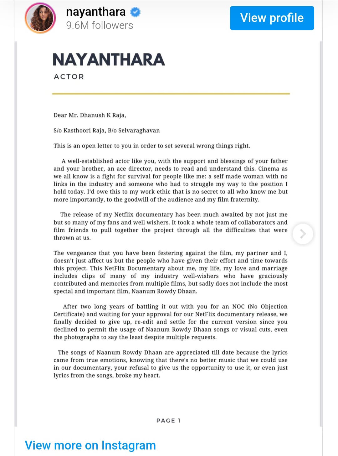 In her lengthy post on social media, Nayanthara expressed her frustration at the situation, accusing dhanush of holding a personal grudge against both her and Vignesh Shivan. She also criticized his demand for a hefty Rs 10 crore payment for the brief clip. As of now, dhanush has not responded publicly to the allegations.