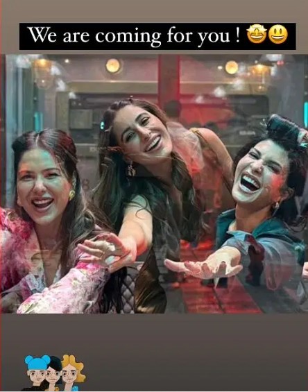 On december 3, nargis fakhri took to her instagram Stories and shared a stunning picture with sonam bajwa and jacqueline fernandez from the sets of their upcoming film Housefull 5. In the picture, the three leading ladies are seen having fun, giving a glimpse of their characters in the upcoming comedy film. Sharing the photo, she wrote, "We are coming for you!" and tagged Sonam and Jacqueline on it.