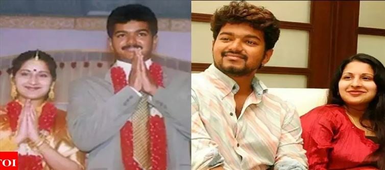 വിജയ് യുടെ കരിയറിലെ ആദ്യത്തെ ബ്ലോക്ക്ബസ്റ്റർ ഹിറ്റ് സിനിമയാണ് പൂവെ ഉനക്കാകെ. ഈ സിനിമ തന്നെയാണ് സംഗീതയെയും വിജയിലേക്ക് അടുപ്പിച്ചത്. സിനിമ കണ്ട വിജയ് യുടെ കടുത്ത ആരാധികയായ സംഗീത, വിജയ് യെ കാണാൻ വേണ്ടി മാത്രം ലണ്ടനിൽ നിന്ന് ചെന്നൈയിലെത്തി. ചെന്നൈ ഫിലിം സിറ്റിയിൽ വച്ചായിരുന്നു ഇരുവരുടെയും ആദ്യത്തെ കൂടിക്കാഴ്ച. ആദ്യ കൂടിക്കാഴ്ചയിൽ തന്നെ സംഗീതയുടെ പെരുമാറ്റവും സംസാരവുമെല്ലാം വിജയ് യെ ആകർഷിച്ചിരുന്നു. അല്പ നേരം സംസാരിച്ചതിന് ശേഷം വിജയ് സംഗീതയെ വീട്ടിലേക്ക് ക്ഷണിച്ചു, അച്ഛനെയും അമ്മയെയും പരിചയപ്പെടുത്തിക്കൊടുത്തു. അതായിരുന്നു ആദ്യത്തെ കൂടിക്കാഴ്ച. നിശ്ചയം കഴിഞ്ഞ് ഒൻപത് മാസങ്ങൾക്ക് ശേഷമായിരുന്നു വിവാഹം. വിജയ് ക്രിസ്ത്യനും, സംഗീത ഹിന്ദുവുമാണ്.