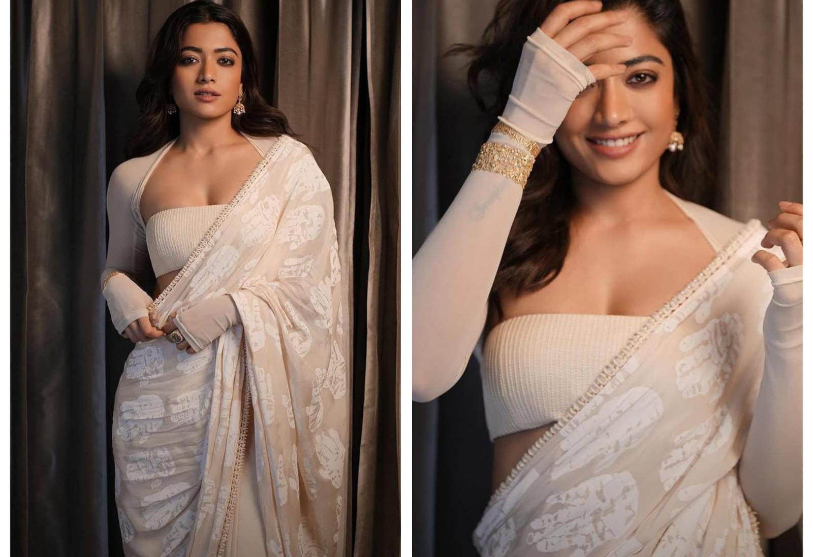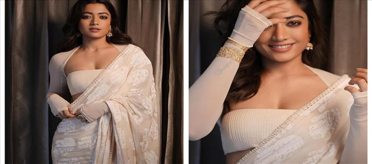 అప్పటి నుండి ఈమెకు హిందీ సినిమాలలో కూడా అవకాశాలు దక్కుతున్నాయి. ఇకపోతే కొంత కాలం క్రితమే పుష్ప పార్ట్ 2 మూవీ విడుదల అయ్యి అద్భుతమైన విజయాన్ని అందుకుంది. ఈ సినిమాతో ఈమె క్రేజ్ ఇండియా వ్యాప్తంగా మరింతగా పెరిగింది. ఇకపోతే సినిమాల్లో వీలు చిక్కినప్పుడల్లా తన అందాలతో ప్రేక్షకులను కట్టిపడేస్తున్న ఈ బ్యూటీ సోషల్ మీడియాలో కూడా అప్పుడప్పుడు తనకు సంబంధించిన హాట్ ఫోటోలను పోస్ట్ చేస్తూ వస్తుంది. ఇకపోతే తాజాగా రష్మీక కి సంబంధించిన కొన్ని ఫోటోలు సోషల్ మీడియాలో అదిరిపోయే రేంజ్ లో వైరల్ అవుతున్నాయి. తాజాగా ఈ బ్యూటీ పలుచటి వైట్ కలర్ శారీని కట్టుకొని అందుకు తగిన బ్లౌజ్ ను ధరించి తాను కట్టుకున్న చీర పవిటను కాస్త పక్కకు జరిపి తన హాట్ ఏద అందాలు ప్రదర్శితం అయ్యేలా ఫోటోలకు స్టిల్స్ ఇచ్చింది. ప్రస్తుతం ఈ బ్యూటీ కి సంబంధించిన ఈ హాట్ లుక్ లో ఉన్న ఫోటోలు సోషల్ మీడియాలో ఫుల్ గా వైరల్ అవుతున్నాయి.