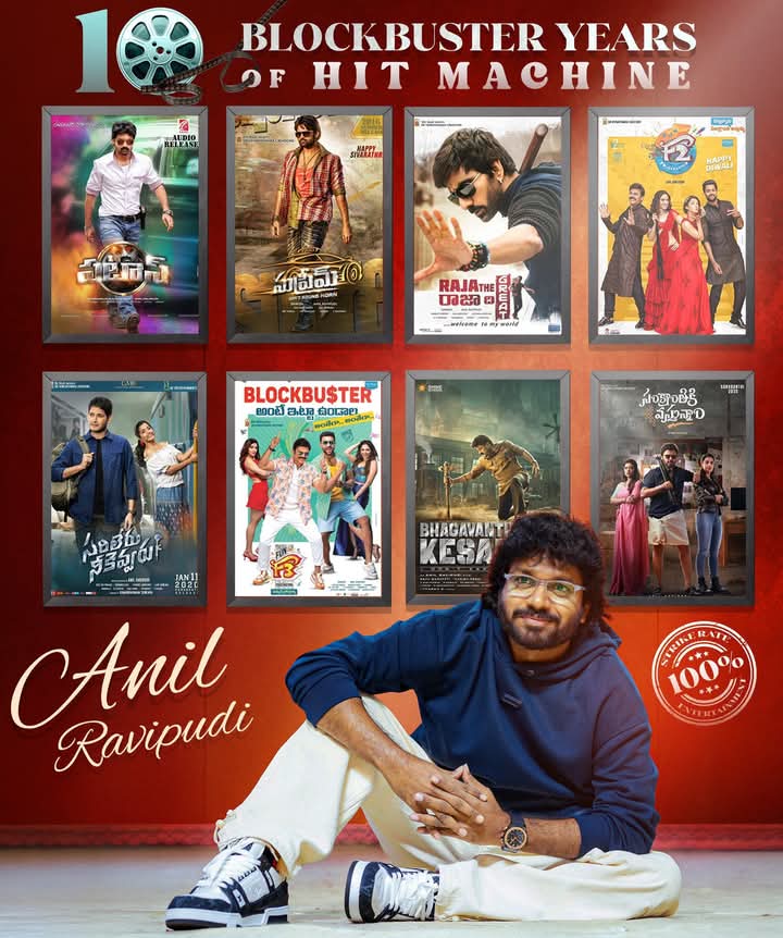 సినిమా ఇండస్ట్రీ లోకి ఎంతో మంది దర్శకులు ప్రతి సంవత్సరం ఎంట్రీ ఇస్తూ ఉంటారు. వారిలో కొంత మంది మాత్రమే అద్భుతమైన స్థాయిలో సక్సెస్ను అందుకొని స్టార్ డైరెక్టర్ల స్థాయికి చేరుకుంటూ ఉంటారు. ఇక మరి కొంతమంది మాత్రమే దర్శకత్వం వహించిన ప్రతి సినిమాతో విజయాన్ని అందుకొని తమకంటూ ఒక ప్రత్యేక ఈమేజ్ ను ఇండస్ట్రీలో ఏర్పరచుకుంటారు. అలా తెలుగు సినిమా పరిశ్రమలోకి ఎంట్రీ ఇచ్చిన 10 సంవత్సరాలలో 8 సినిమాలను రూపొందించి 8 మూవీలలో కూడా అద్భుతమైన విజయాలను అందుకొని సూపర్ సాలిడ్ గా కెరియర్లో ముందుకు సాగిస్తున్న వారిలో అనిల్ రావిపూడి ఒకరు.