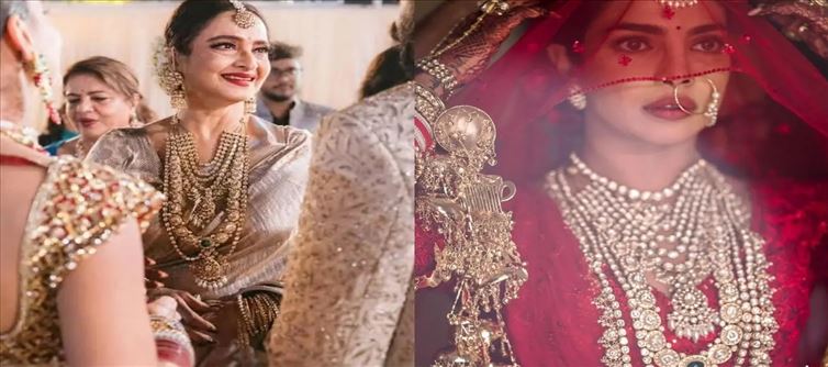 అదేంటంటే.. ప్రియాంక చోప్రా సోదరుడి పెళ్లిలో రేఖ తన మెడలో వేసుకున్న నెక్లెస్ ప్రియాంక చోప్రా తన పెళ్లికి వేసుకున్న నక్లెస్ రెండు సేమ్ టు సేమ్ ఉండడంతో ఈ రెండు ఫోటోలను ఒకే దగ్గర పెట్టి చూస్తూ ప్రియాంక చోప్రా నక్లెస్ ని రేఖ తన మెడలో వేసుకుంది అని కొంతమంది పోస్టులు పెడుతుంటే.. మరి కొంతమందేమో ఫన్నీగా సీనియర్ నటి రేఖ ప్రియాంక చోప్రా దగ్గర నెక్లెస్ ని దొంగలించింది కావచ్చు అని మరి కొంత మంది ఫన్నీ ఏమోజీలు పెడుతూ పోస్టులు చేస్తున్నారు. ఏది ఏమైనప్పటికీ ప్రస్తుతం నటి రేఖ మెడలో ఉన్న నెక్లెస్ అలాగే ప్రియాంక చోప్రా పెళ్లికి వేసుకున్న నెక్లెస్ కి సంబంధించి ఫోటోలు సోషల్ మీడియా లో చక్కర్లు కొడుతున్నాయి.
