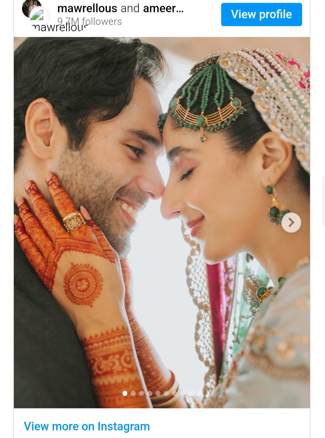 Mawra Hocane and Pakistani actor Ameer Gilani were married in a small ceremony on february 5, 2025. The couple is constantly posting beautiful snippets of their wedding. In case you didn't know, Mawra and Ameer have a history of working together in critically acclaimed Pakistani dramas such as 'Sabaat' and 'Neem'.