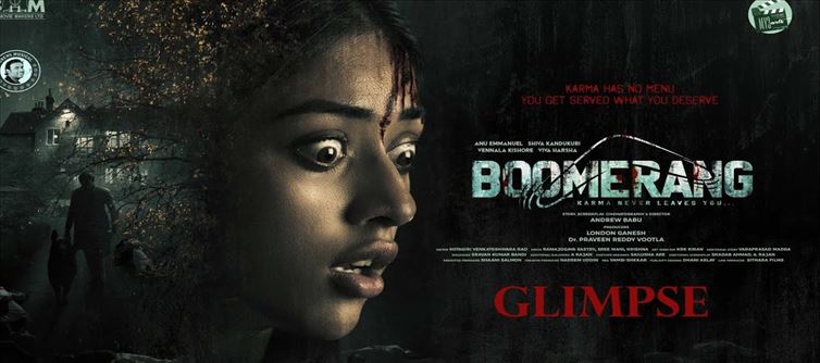 ఈ చిత్రంలో శివ కందుకూరి ప్రధాన పాత్రల నటిస్తూ ఉన్నారు. తాజాగా బూమరాంగ్ గ్లింప్స్ రిలీజ్ చేయగా అందరిని ఆకట్టుకునేలా కనిపిస్తోంది.అను ఇమ్మాన్యుయేల్ ఒక బిల్డింగ్ లోకి వెళ్లడం అక్కడ ఎవరో ఉన్నారని తాను అనుకోవడంతో పాటు ఆ బిల్డింగులో చాలామంది గుర్తు తెలియని వ్యక్తులు చంపుతూ ఉన్నట్టుగా చూపించారు. ఆ ఇంట్లోనే అను ఉన్నట్టుగా చూపించారు. చూడడానికి గ్లింప్స్ చాలా భయంకరంగా హాలీవుడ్ రేంజ్ లో ఉన్నది. అనూప్ రూబెన్స్ ఈ చిత్రానికి ఇచ్చినటువంటి బిజిఎం హైలైట్ గా నిలుస్తోంది.