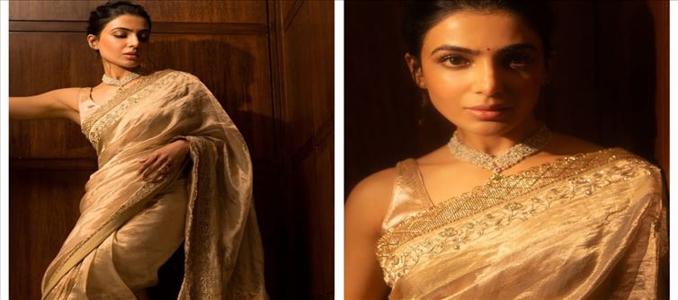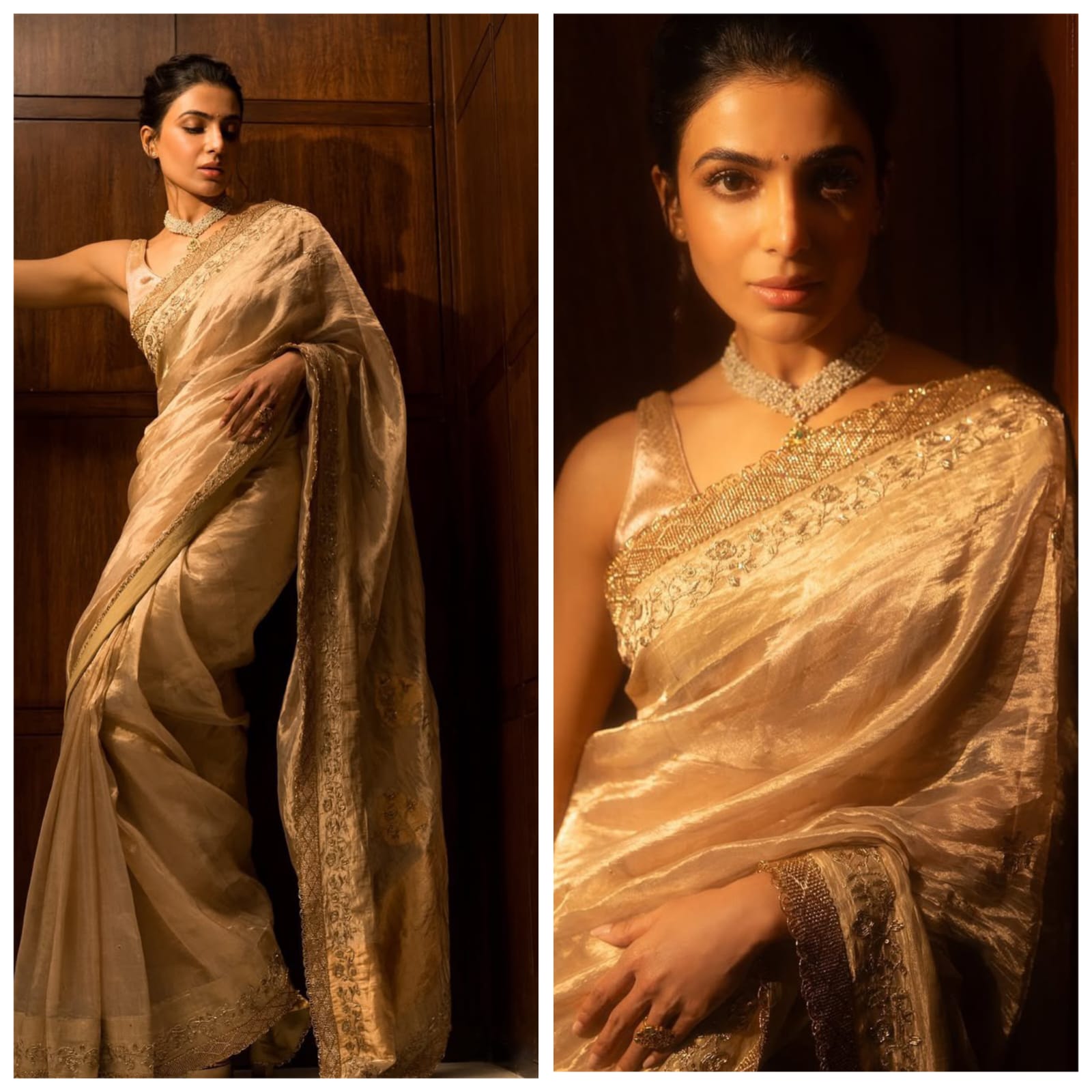 ఇది ఇలా ఉంటే తాజాగా ఈ బ్యూటీ కి సంబంధించిన కొన్ని ఫోటోలు సోషల్ మీడియాలో ఫుల్ గా వైరల్ అవుతున్నాయి. తాజాగా సమంత అదిరిపోయే లుక్ లో ఉన్న శారీని కట్టుకొని , అందుకు తగిన స్లీవ్ లెస్ బ్లౌజ్ ను ధరించి అదిరిపోయే హాట్ యాంగిల్స్ లో కొన్ని ఫోటోలకు స్టిల్స్ ఇచ్చింది. ప్రస్తుతం సమంత కు సంబంధించిన ఈ చీర కట్టులో స్లీవ్ లెస్ బ్లౌజ్ లో ఉన్న ఫోటోలు సోషల్ మీడియాలో సూపర్ గా వైరల్ అవుతున్నాయి.