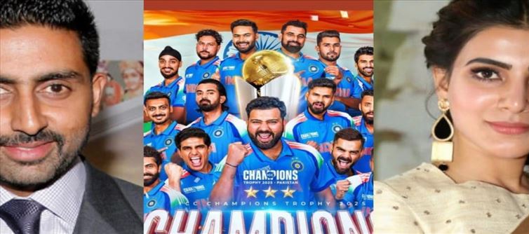 Samantha Ruth Prabhu, abhishek Bachchan, And kajol Rejoice As india Lifts The Champions Trophy 2025.