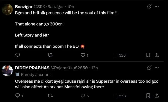 Despite the competition with the film of a superstar like Rajinikanth, there is not even a wrinkle on the face of Hrithik's fans. The reaction of most users is positive and they are confident that war 2 will perform better at the box office. Some netizens have even claimed that 'War 2' will be a blockbuster. At the same time, some users are calling this clash unnecessary. Let's know what the users are saying...