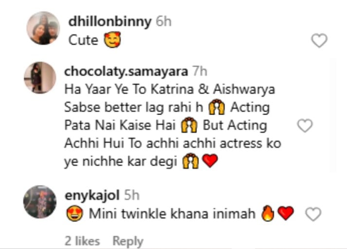 As soon as netizens saw Naomika, they started praising her beauty. One user wrote, cute, another wrote, mini Twinkle Khanna, another commented, 'Yes, she looks better than katrina and Aishwarya. I don't know how her acting is. Yes, if her acting is good, she will leave behind even the best actresses.' Another wrote, 'Really straight out of the fridge.'