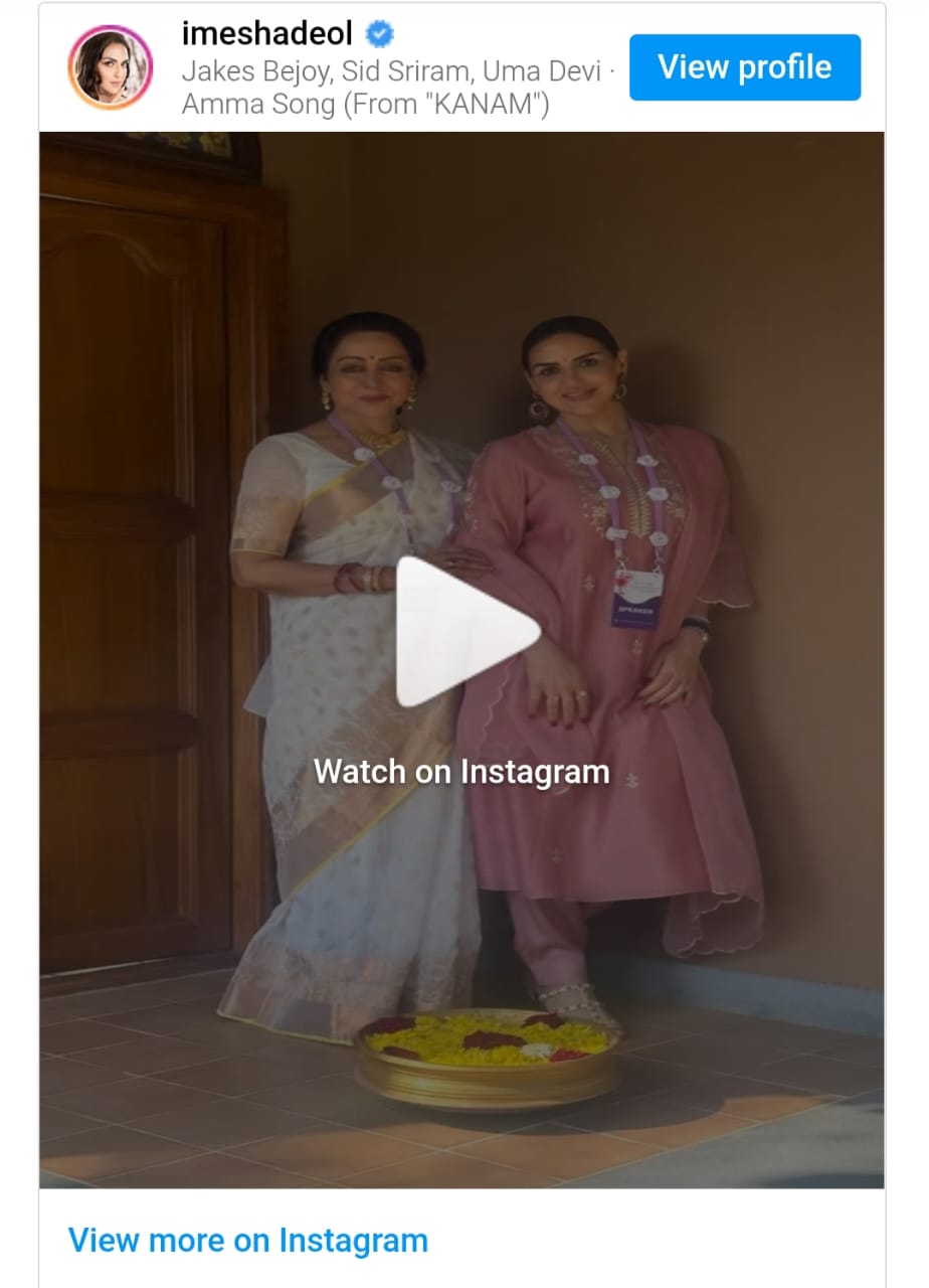 Esha Deol posted several pictures of her mother, hema Malini, and wrote in the caption, "Maa, I love you so much, the sweetest woman in my life, Happy Mother's Day to you."