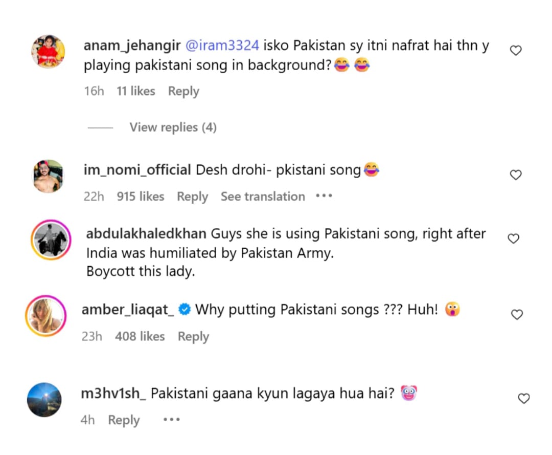 Another person commented- 'Friends, she is using a Pakistani song, just after india was insulted by the Pakistani army.' Boycott this woman. Apart from this, one wrote- 'Why is she using a Pakistani song?'