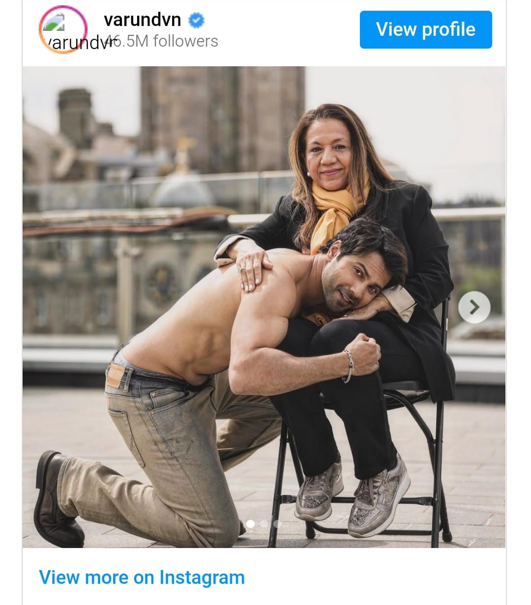 Varun dhawan shared a shirtless picture on Mother's Day.