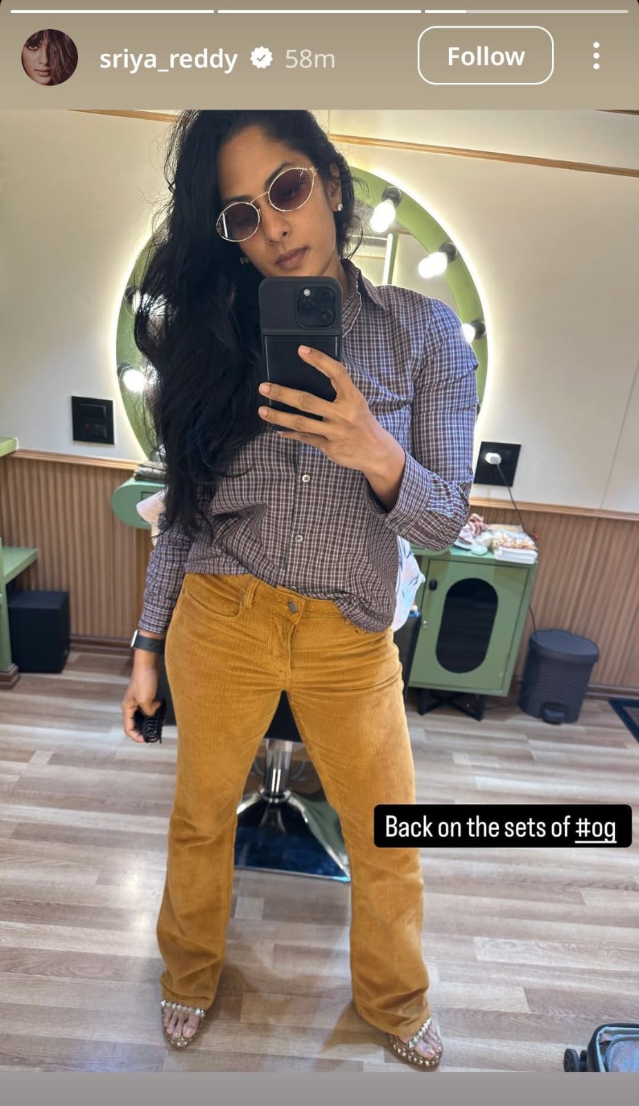 ఇది ఇలా ఉంటే తాజా గా ఈ మూవీ లో కీలక పాత్రలో నటిస్తున్న శ్రేయ రెడ్డి సినిమా షూటింగ్లో జాయిన్ అయినట్లు తన సోషల్ మీడియా అకౌంట్ ద్వారా తెలిపింది. ఓజి మూవీ షూటింగ్ తిరిగి స్టార్ట్ కావడంతో పవన్ అభిమానులు ఫుల్ ఖుషి అవుతునట్లు తెలుస్తోంది. ప్రస్తుతం పవన్ అభిమానులతో పాటు మామూలు సినీ ప్రేమికులు కూడా ఓజి మూవీ పై భారీ అంచనాలు పెట్టుకున్నారు. మరి ఈ సినిమా ఏ స్థాయి విజయాన్ని అందుకుంటుందో చూడాలి.