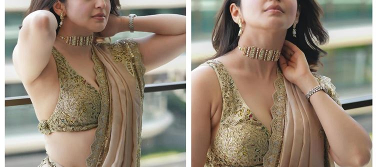 ప్రస్తుతం వైరల్ అవుతున్న ఫోటోలలో ఈ బ్యూటీ అదిరిపోయే లుక్ లో శారీని కట్టుకొని అందుకు తగిన స్లీవ్ లెస్ బ్లౌజ్ ను ధరించి తన చీర పవిటను కాస్త పక్కకు జరిపి తన నడుము మరియు ఎద అందాలు ప్రదర్శితం అయ్యేలా ఫోటోలకు స్టిల్స్ ఇచ్చింది. ప్రస్తుతం ఈ బ్యూటీ కి సంబంధించిన ఈ హాట్ లుక్ లో ఉన్న ఫోటోలు వైరల్ అవుతున్నాయి.