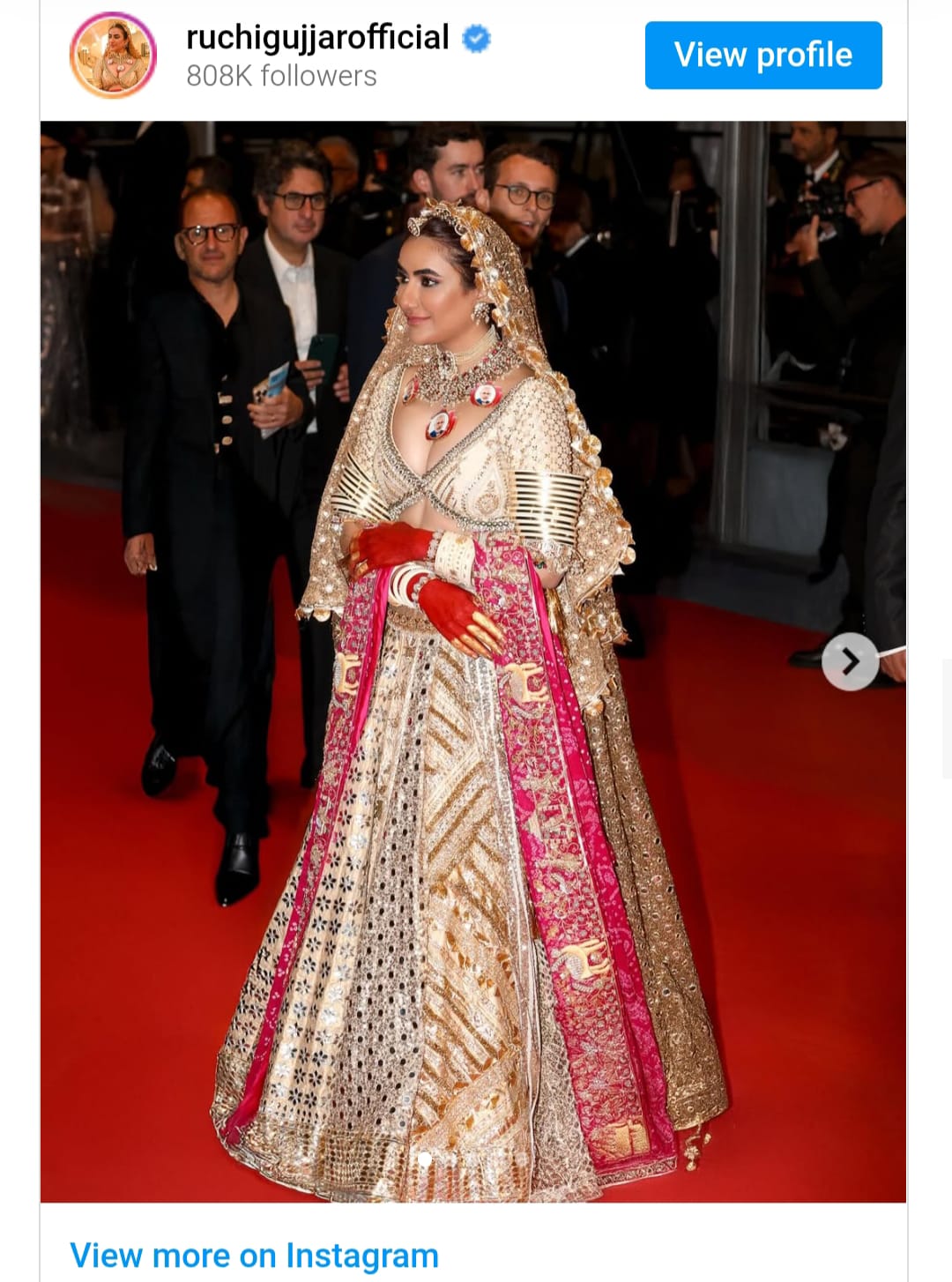 Model and actress Ruchi Gujjar's Cannes look was also in the news. The actress attended Cannes with a classical Rajasthani bridal look. During this, her necklace attracted the most attention. Her necklace had a photo of PM Modi on the design of a lotus flower. Regarding her unique necklace, Ruchi Gujjar had said that this is not a necklace, she wanted to honor PM Modi on the world stage who has taken the country to new heights.