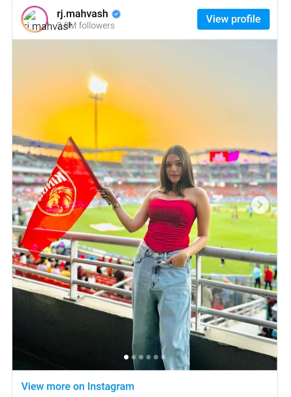 RJ Mahwash Pics: Actress RJ Mahwash has shared some of her pictures from the cricket ground and claimed that the final match of the IPL will be played between RCB vs PBKS.