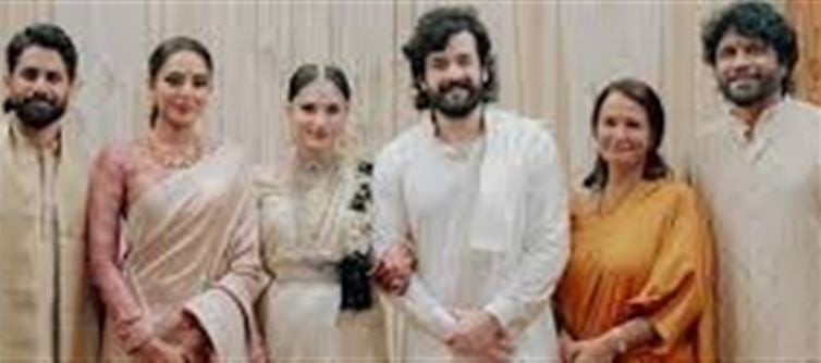 Tollywood celebrities participated in the wedding festivities at Akkineni's house. It is known that nagarjuna did not go and give wedding invitations to the Chief Ministers of telugu states. Many film celebrities participated in this grand wedding ceremony held at annapurna Studios. Not all the photos and videos related to the wedding have been officially released. Some photos say without saying what level the wedding was held. It seems that the couple of naga chaitanya and shobitha Dhulipala stood out as a special attraction in this wedding attended by many celebrities. Eyewitnesses say that these two stood in the place of brother and sister-in-law at Akhil's wedding.