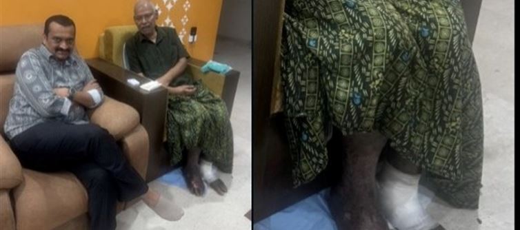 తాజాగా ప్రముఖ నిర్మాత బండ్ల గణేష్ ,కోటా శ్రీనివాసను మర్యాదపూర్వకంగా కలిసినట్లు ఒక ఫోటో సోషల్ మీడియాలో షేర్ చేశారు.. అయితే ఈ ఫోటో చూసిన అభిమానులు ఆశ్చర్యపోతూ ఆందోళన చెందుతున్నారు.. కోట శ్రీనివాసరావు బక్క చిక్కిపోయి మరి గుర్తుపట్టలేనంతగా మారిపోవడమే కాకుండా పాదాలకి కట్టుతో కనిపించారు. ఆరోగ్యం పైన కూడా అభిమానులు ఆందోళన చెందుతున్నారు. కోట శ్రీనివాసరావు అనారోగ్య సమస్యలపై ఇప్పటివరకు ఏ విధమైనటువంటి క్లారిటీ రాలేదు.. మరి ఈ విషయం పైన ఆయన స్వయంగా స్పందిస్తారేమో చూడాలి మరి. ఎన్నో అద్భుతమైన పాత్రలలో నటించి పేరు సంపాదించిన కోటా శ్రీనివాసరావు ఆరోగ్యంగా క్షేమంగా ఉండాలని అభిమానులు తెలియజేస్తున్నారు. ప్రస్తుతం ఫోటోలు అయితే సోషల్ మీడియాలో తెగ వైరల్ గా మారుతున్నాయి.
