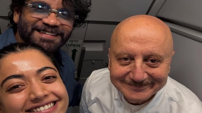 Anupam Kher: 'Everyone smiles in the same language', Anupam shared a picture with Nagarjuna-Rashmika from the flight