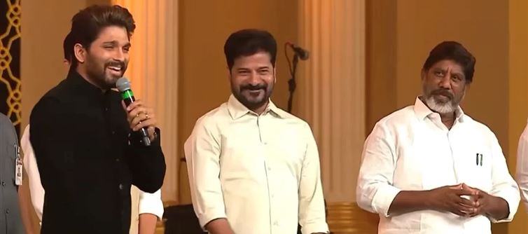 ఈ అవార్డు అందుకున్న తర్వాత తెలంగాణ ప్రభుత్వానికి ధన్యవాదాలు తెలియజేస్తూ అలాగే సీఎం రేవంత్ రెడ్డి అన్న ,డిప్యూటీ సీఎం భట్టి గారికి థాంక్స్ అండ్ అలాగే డైరెక్టర్ సుకుమార్ కు చిత్ర బృందానికి రాజమౌళికి ప్రత్యేకించి మరి ధన్యవాదాలు తెలిపారు. అలాగే సీఎం రేవంత్ రెడ్డి పర్మిషన్ తీసుకొని మరి అల్లు అర్జున్ డైలాగ్ చెప్పడంతో అక్కడున్న వారందరూ కూడా వీలలు వేస్తూ చప్పట్లు కొట్టారు.."ఆ బిడ్డ మీద ఒక్క గీతపడ్డ గంగమ్మ తల్లి జాతర లో యాట తలలు నరికినట్టుగా ఒక్కొక్కరిని నరుకుతా.. పుష్ప పుష్ప రాజ్ అసలు తగ్గేదేలే అంటు అని చెప్పిన డైలాగు అందరి చేత చప్పట్లు కొట్టించేలా చేసింది.