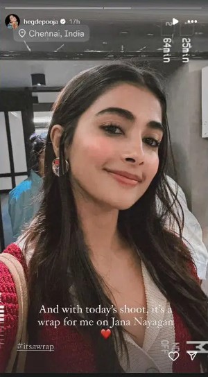 Pooja Hegde has shared a selfie of her on her instagram story. In this selfie, a smile is seen on Pooja's face. This happiness is on Pooja's face about the shooting of her film 'Jana Nayagan' ending. With this post, she said that she has completed the shooting of her part in this film and now only dubbing is left. Along with this, pooja wrote a wrap-up and also made a red heart emoji. Pooja's fans are very happy with this post. They are constantly showering fire and red heart emojis.