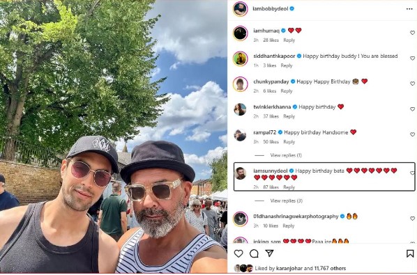 After this post Bobby, many stars congratulated Aryaman on his birthday. Aryaman's uncle and actor sunny deol wrote, "Happy Birthday son" and also Sunny shared a red heart emoji. At the same time, chunky pandey wrote, 'Happy Birthday', Arjun Rampal wrote, 'Happy Birthday Handsome', Twinkle Khanna wrote, 'Happy Birthday', Siddhant Kapoor wrote, 'Happy Birthday friend! You are blessed. Apart from all these celebs, huma qureshi and rahul dev also sent love to Aryaman on his birthday.