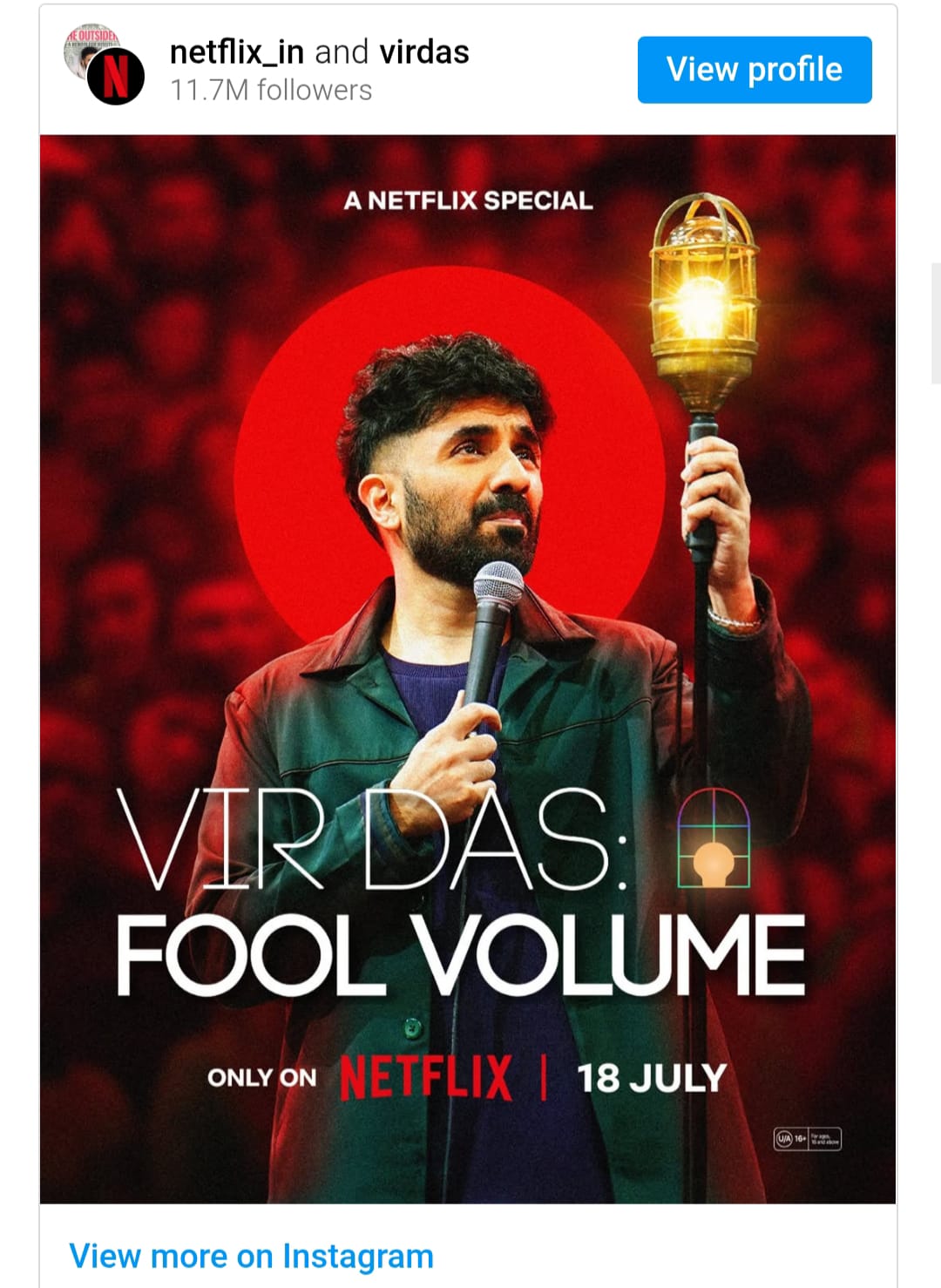 Bollywood actor and comedian Vir Das's show 'Full Volume' is releasing on the OTT platform Netflix on 18 July 2025.