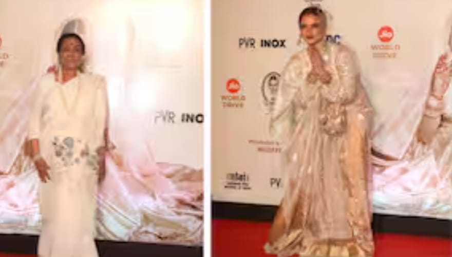 In a candid moment that had the audience chuckling, Bhosle quipped mid-song, “Mera gala dabba rahi hai,” teasing rekha as she held her close. The veteran actress burst into laughter, and the audience responded with applause and cheer.