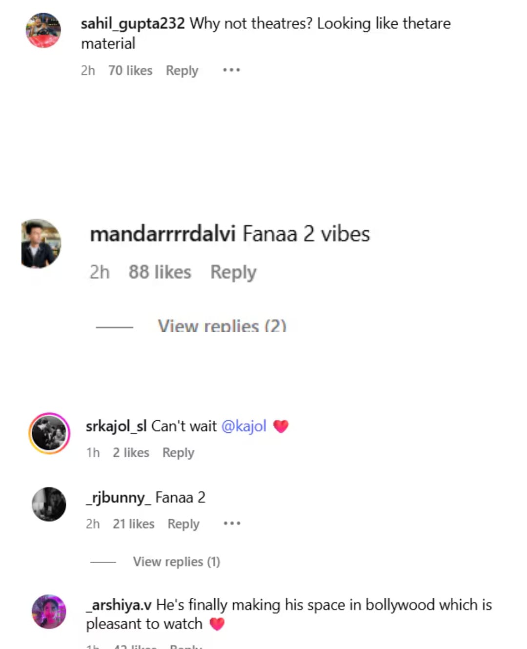 Soon after the release of Sarzameen's teaser, fans expressed their excitement for the film. A netizen wrote, "I can't believe that this beautiful film is going to be released. This was the best news of the day." While another wrote, "Why not theaters? Looks like theater material." Many commented that the teaser reminded them of kajol and Aamir Khan's 2006 film Fanaa. "Fanaa 2 vibes," wrote a netizen, while another wrote, "Got Fanaa vibes from this."