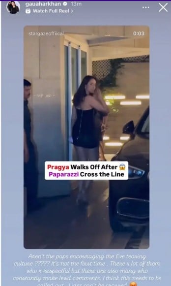 Actress gauhar khan shared a video on her instagram story, in which actress pragya jaiswal got lewd comments from the paps. Regarding this video, gauhar khan now supported the actress and wrote in the caption of the story, 'Aren't the paps promoting the culture of molestation? Many people keep making indecent comments. You people cannot cross the limits.'
