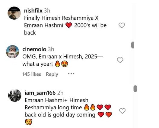 Many users have commented on this post. One user has written, 'Finally, himesh reshammiya and emraan hashmi are together. The era of 2000 will come back again.' Another user has written, 'Oh my god, emraan hashmi and himesh reshammiya in 2025. Wow, what a year.' Another user has written 'Emraan Hashmi and himesh reshammiya after a long time. Old and golden days are coming back.'