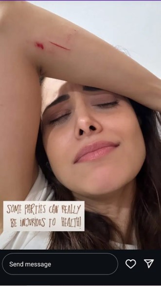 The actress who got injured at the party has now revealed it through her instagram story. It can be seen in the pictures that there are deep scratches and bruises on her hand. In one photo, she has shown the injury closely, in which it can be seen that her skin is peeling and blood has also come out. Along with this, she has also put stickers of 'ouch' and a bandage on the filter.