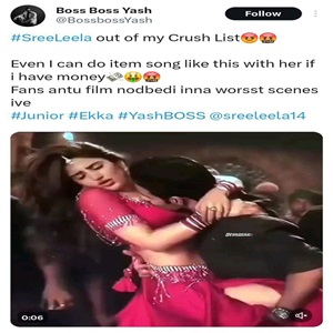 దానికి కారణం శ్రీ లీల వైరల్ వయ్యారి సాంగ్లో మితిమీరిన రొమాన్స్ చేయడంతో దానికి సంబంధించిన వీడియో క్లిప్పింగ్స్ యాడ్ చేస్తూ యష్ అభిమానుల పేరుతో ఉన్న ఒక ఎక్స్ ఖాతా నెటిజన్ షాకింగ్ పోస్ట్ పెట్టాడు. ఇక ఆ పోస్టులో ఏముందంటే.. డబ్బులిస్తే శ్రీలీల ఏమైనా చేస్తుంది కావచ్చు..ఒకవేళ మేము డబ్బిస్తే మాతో కూడా ఇలాగే చేసేది కావచ్చు.. డబ్బులు ఇచ్చినంత మాత్రాన శ్రీ లీల ఓ కొత్త హీరోతో ఎలాంటి పాటలైనా చేసేస్తుందా అంటూ శ్రీలీల, కిరీటి ఇద్దరు రొమాంటిక్ ఫోజ్ లో ఉన్న ఒక ఫోటోని షేర్ చేస్తూ పోస్ట్ పెట్టారు. దీనిపై చాలామంది యష్ అభిమానులు కూడా అవునవును శ్రీలీల డబ్బు కోసం ఎలాంటి పనైనా చేస్తుందని ఈ ఒక్క పాటతో అర్థం చేసుకోవచ్చు అంటూ కామెంట్లు పెడుతున్నారు.